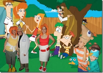 I like to make my kids’ Halloween costumes, b/c then we get to be creative and make what we can’t buy, and we also get to choose the materials. The store-bought polyester is such a sweat factory, and when I make costumes, I choose a lighter weight cotton as much as possible. I also like to do theme costumes. Here are some from the past few years. Two years ago, we dressed as characters from Phineas and Ferb. This is the project I bought my sewing machine for! We even got my parents involved as Phineas and Candice’s mom and Doofenshmirtz. Last year, little one and I were The Cat in the Hat and Sam I Am, and big one was Harry Potter. Since they also get to wear their costumes in a storybook parade at school, we stuck with the storybook theme. Little one loves Curious George, so he has the whole family hooked. Naturally, we choose Curious George and The Man with the Yellow Hat.